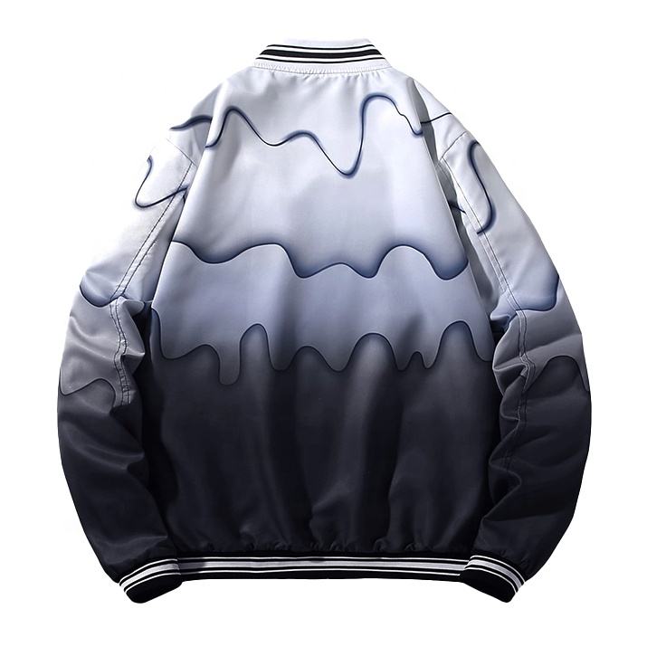 แจ็คเก็ตวาร์ซิตี้สำหรับผู้หญิง แจ็คเก็ตวาร์ซิตี้เดนิมสำหรับผู้ชาย ลายคลื่น ซิปแบบรูด ทรงเข้ารูป สไตล์เบสบอล บอมเบอร์ ย้อมสีพื้น