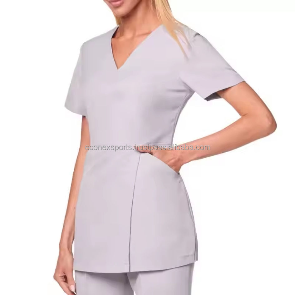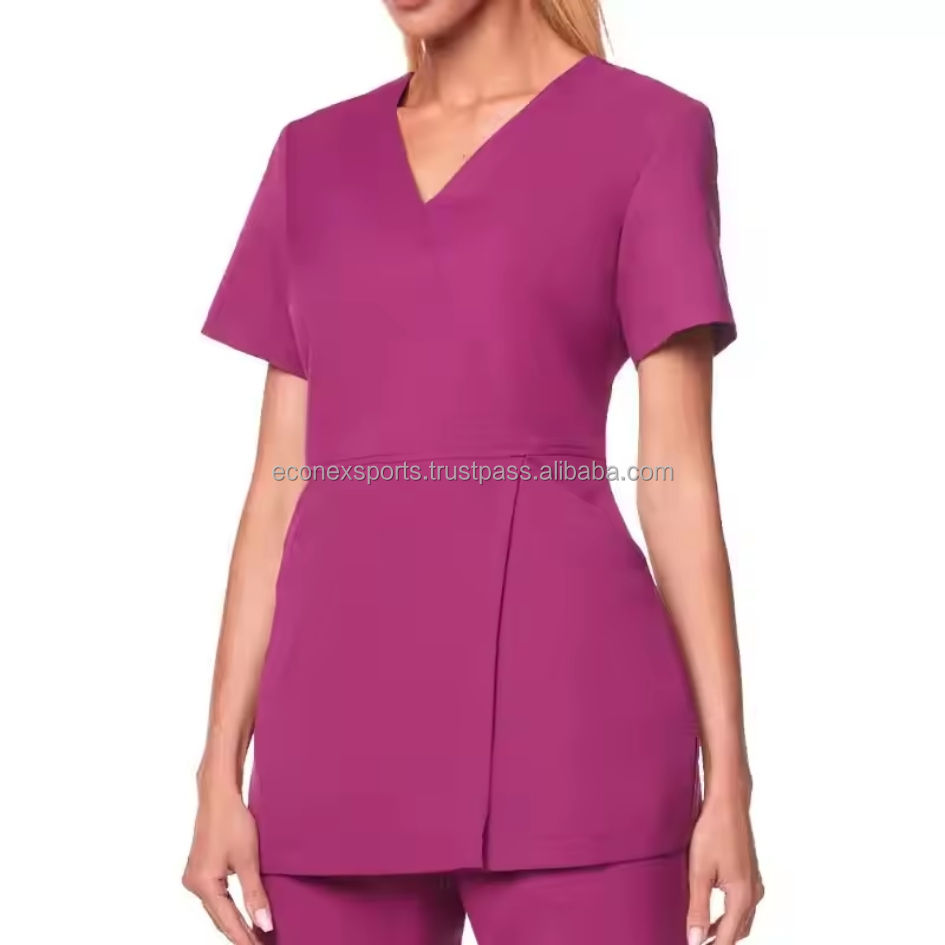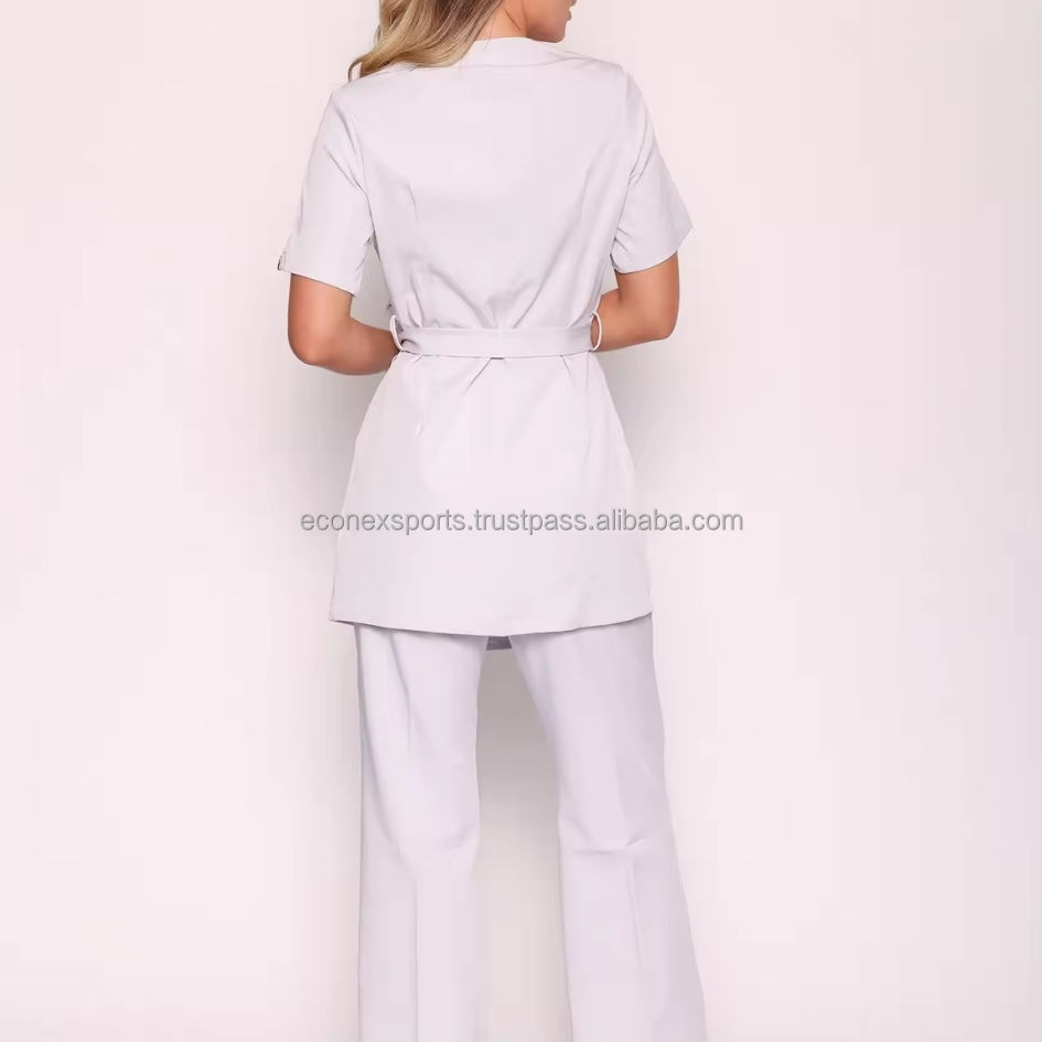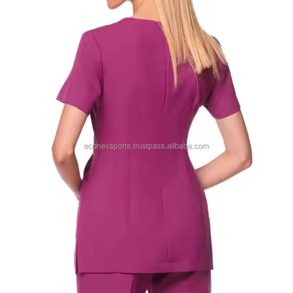 ชุดเครื่องแต่งผมผ้าฝ้ายโพลีเอสเตอร์ใส่สบายสำหรับผู้หญิงชุดแฟนซีเสื้อทูนิคแบบมีกระเป๋าใส่โลโก้ทางการแพทย์คล้ายกัน