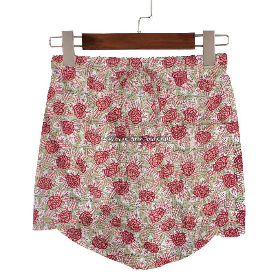 ชื่อสินค้า:กางเกงขาสั้นผ้าฝ้าย 100% พิมพ์ลายบล็อกมือ