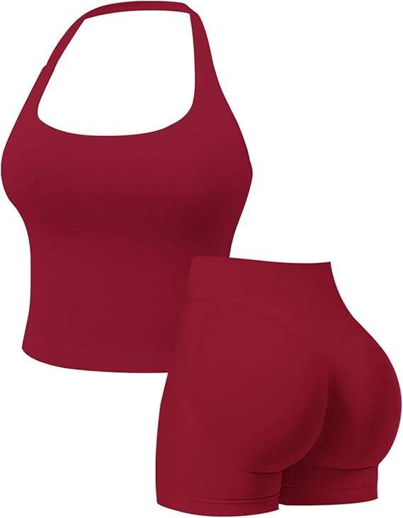 ชุดออกกำลังกายโยคะสำหรับผู้หญิง เสื้อครอปแบบผูกคอ ผ้าสแปนเด็กซ์ กระชับรูปร่าง คุณภาพสูง พร้อมกางเกงขายาวเข้ารูป