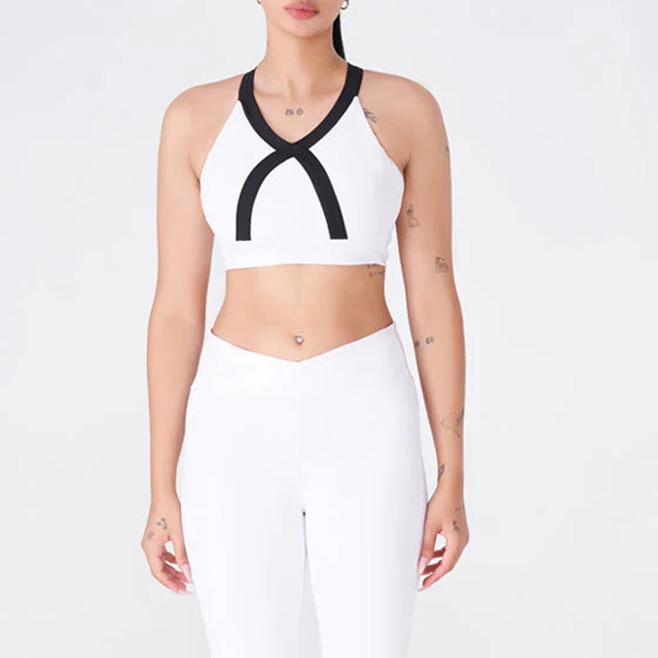 สปอร์ตบราสีตัดกันสำหรับผู้หญิงสำหรับออกกำลังกายโยคะ บราสำหรับวิ่งแบบกันกระแทก ดีไซน์ระบายอากาศได้ดี