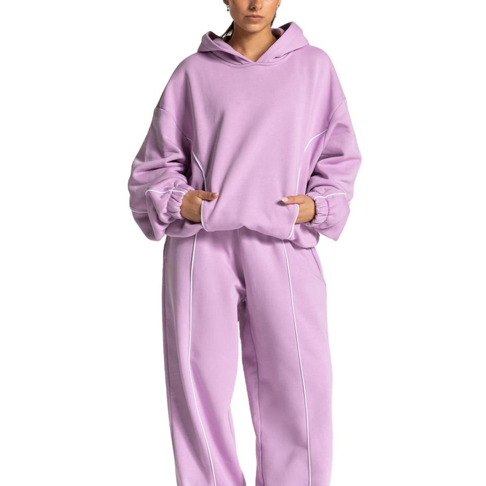ชุดเซ็ตเสื้อฮู้ดดี้และกางเกงวอร์มผู้หญิง ดีไซน์ตัดต่อสี 2 ชิ้น ชุดวอร์มสำหรับผู้หญิง ชุดออกกำลังกายผู้หญิง ผ้าฟลีซ 500gsm