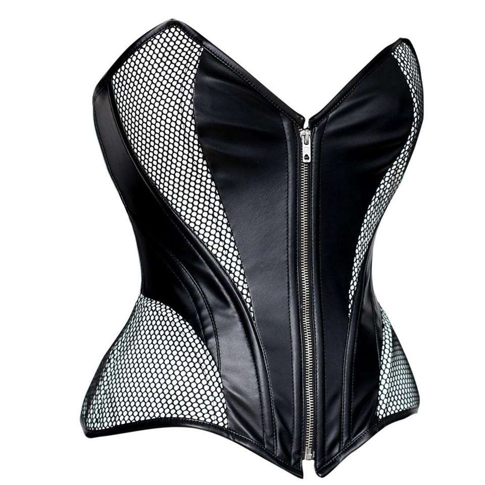 เสื้อครอปเซ็ทผู้หญิงแบบเซ็กซี่ กระชับสัดส่วน วัสดุหนังและตาข่ายทันสมัย สำหรับสาวพลัสไซส์ ระบายอากาศได้ดี