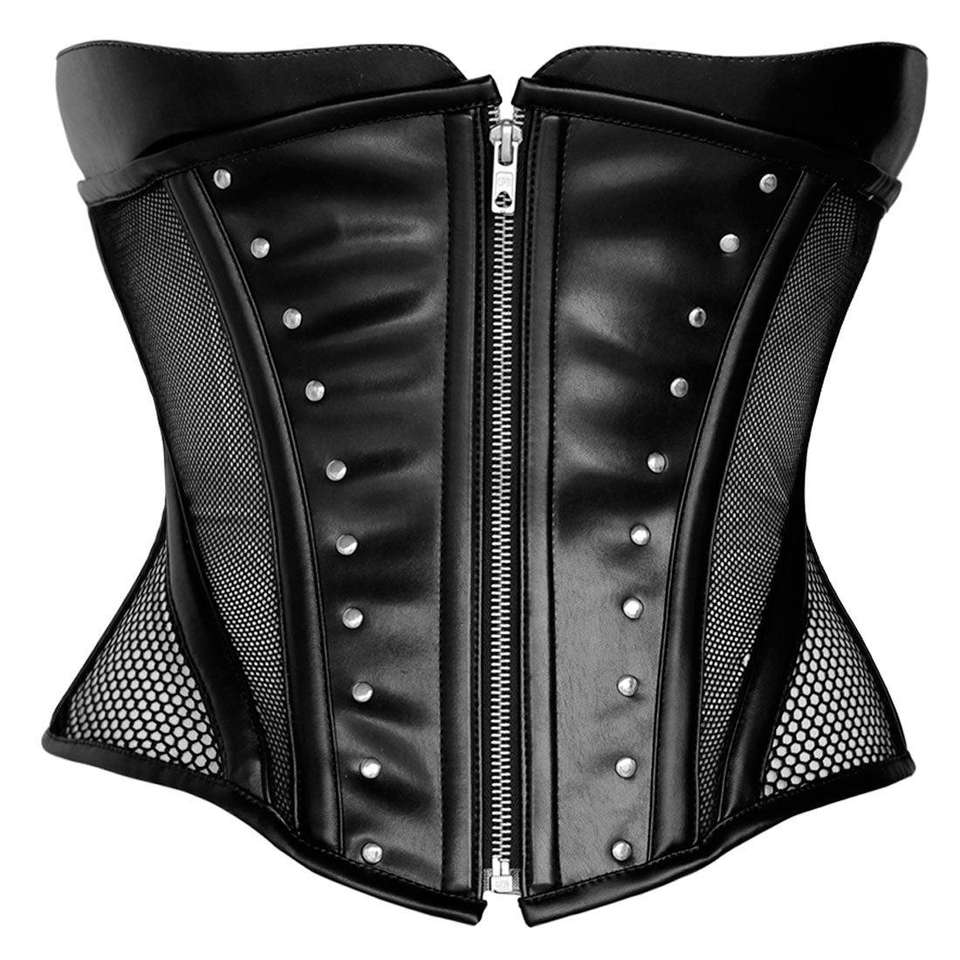 เสื้อครอเซ็ทผู้หญิงแบบเซ็กซี่ กระชับสัดส่วน วัสดุหนังและผ้าซาตินทันสมัย สำหรับสาวพลัสไซส์ ระบายอากาศได้ดี