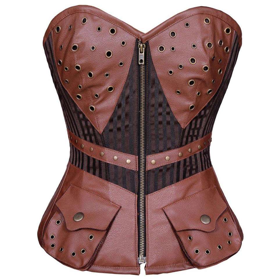 เสื้อครอเซ็ทผู้หญิงแบบเซ็กซี่ กระชับสัดส่วน หนังเทียมทันสมัย สำหรับสาวพลัสไซส์ ระบายอากาศได้ดี