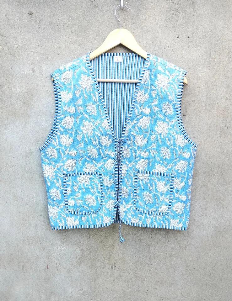 Women's Cotton Block Printed Boho Style Quilted Jacket Reversible Winter Coat Floral Design Casual Holiday Gifts Clothing