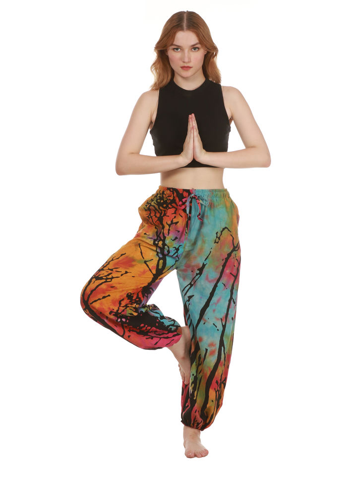 Women's Cotton Boho Print Harem Pants Free Size Satin Elastic Logo Yoga Baggy Straight Drawstring Comfortable Breathable Flat