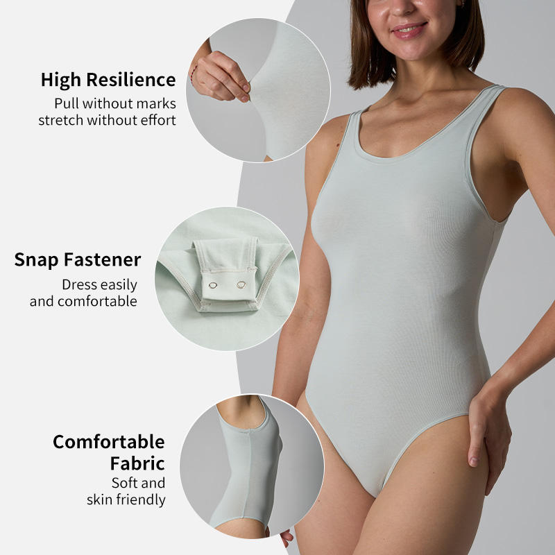 Women's Cotton Crew Neck High Resilience Jersey Bodysuit Soft Feeling Tummy Control Slimming Sculpt Brief Jumpsuit Shape wear