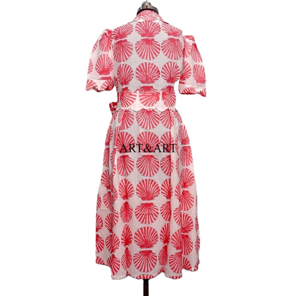 ชุดเดรสผ้าฝ้ายผู้หญิงสไตล์โบฮีเมียน ทำมือ วินเทจ ลายเปลือกหอย สำหรับใส่ในฤดูร้อน แขนสั้น ความยาวปานกลาง เอวธรรมชาติ สไตล์ลำลอง
