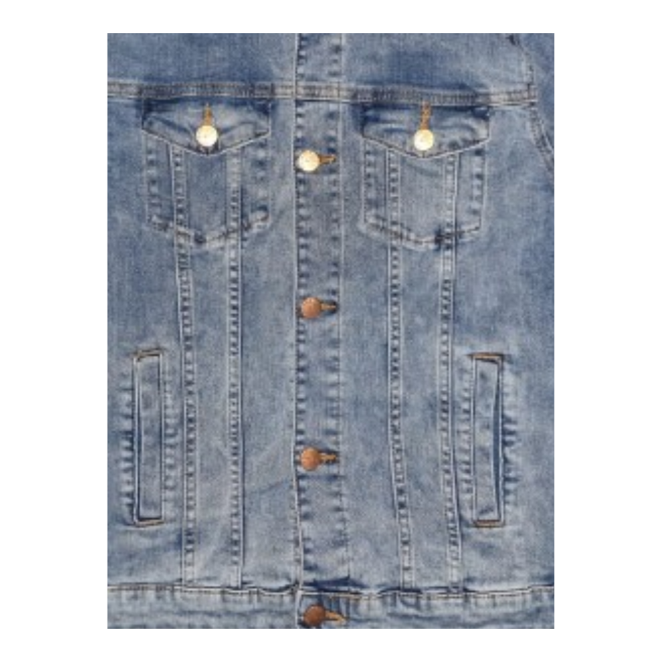 เสื้อแจ็คเก็ตยีนส์ผู้หญิง ผ้าฝ้ายผสมอีลาสเทน 12 ออนซ์ กระเป๋าหน้าสี่ช่อง ทรงวินเทจ สีซีดกลาง ทรงปกติ ผลิตตามแบบ ODM