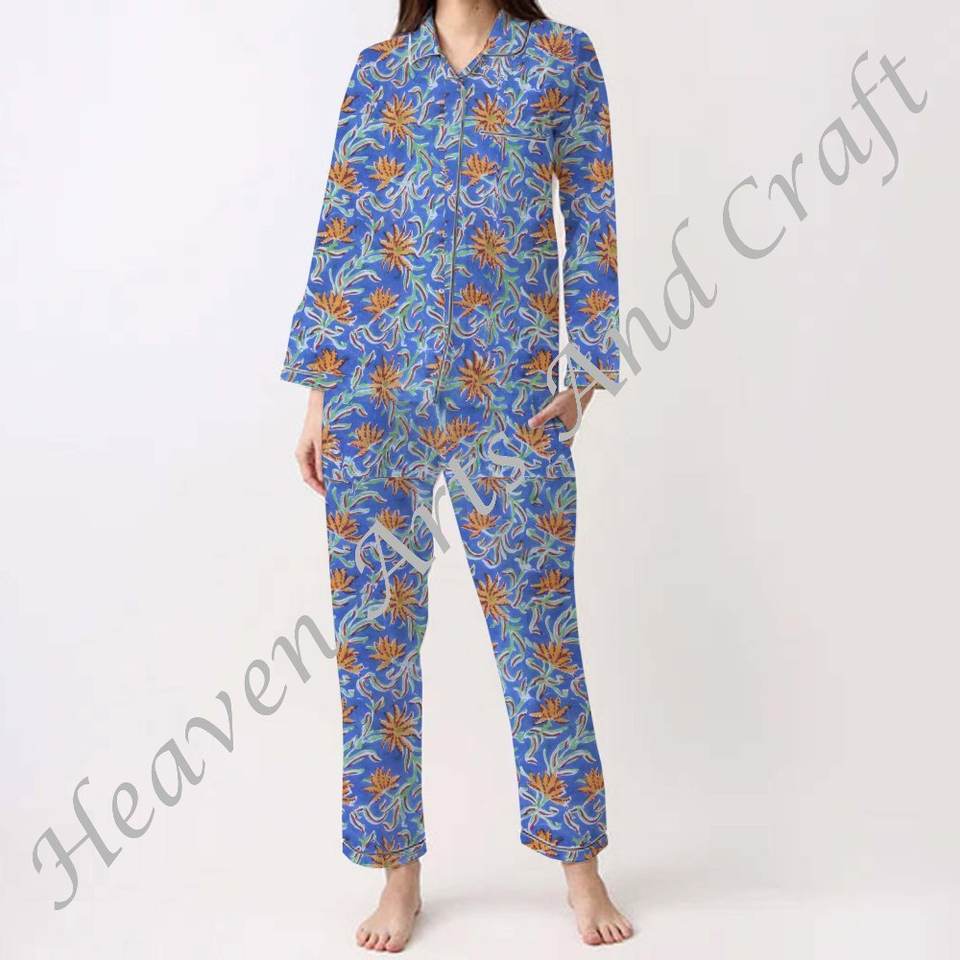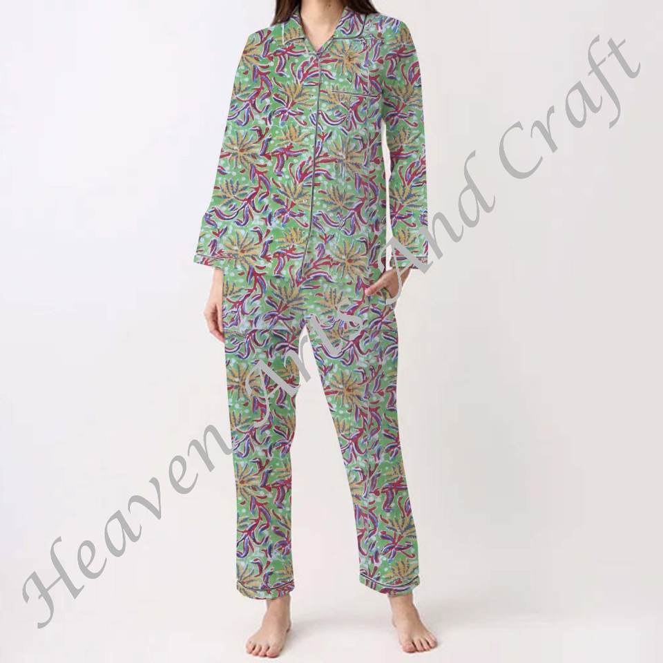 Women's Cotton Hand Block Jungle Print Night Dress for Spring/Summer Floral/Character/Letter Pattern Coconut Tree