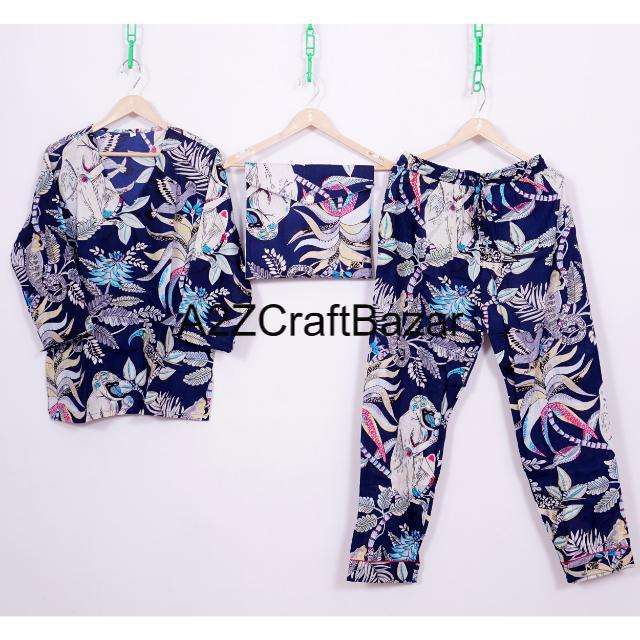 ชุดนอนผ้าฝ้ายทำมือลายลิงอินเดียสำหรับผู้หญิง ระบายอากาศได้ดี แห้งเร็ว นุ่มสบาย ใส่ได้ในฤดูร้อน ดีไซน์หรูหรา คอวี เอวสูง แขนยาว
