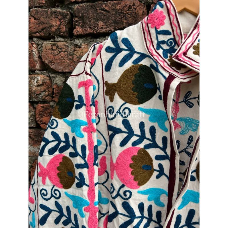 Suzani แจ็กเก็ตผ้าฝ้ายปักลายดอกไม้, เสื้อแจ็กเก็ตเบลเซอร์ชุดโบฮีเมียนสำหรับฤดูหนาว