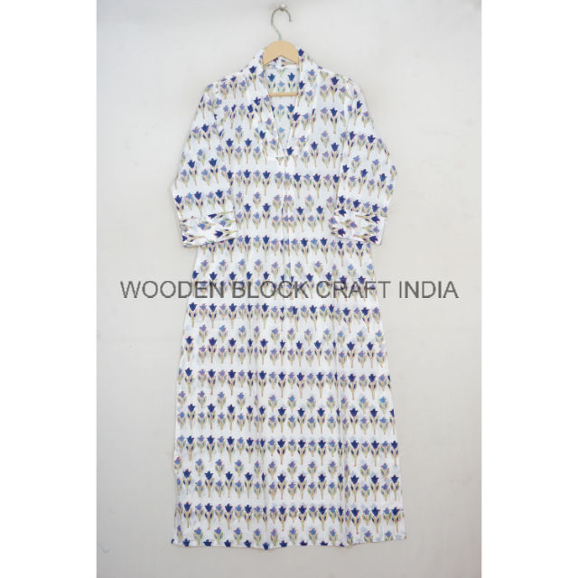 เดรสผ้าฝ้ายผู้หญิงทรงมิดิ เอวธรรมชาติ พิมพ์ลายดอกไม้แบบวาดมือ ระบายอากาศได้ดี เป็นมิตรกับสิ่งแวดล้อม ซักได้ สวมใส่สบายๆ ในฤดูร้อน