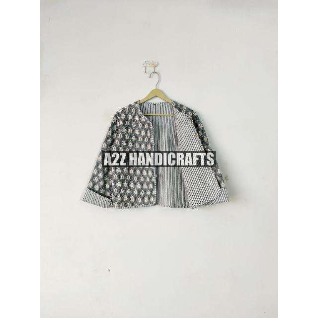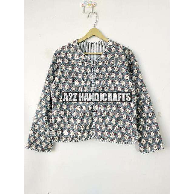 เสื้อแจ็คเก็ตผ้าฝ้ายบุนวมสำหรับผู้หญิง ถักทอระบายอากาศได้ดี พิมพ์ลายบล็อก สไตล์โบโฮ ทำด้วยมือ ของขวัญวันหยุด ติดกระดุม