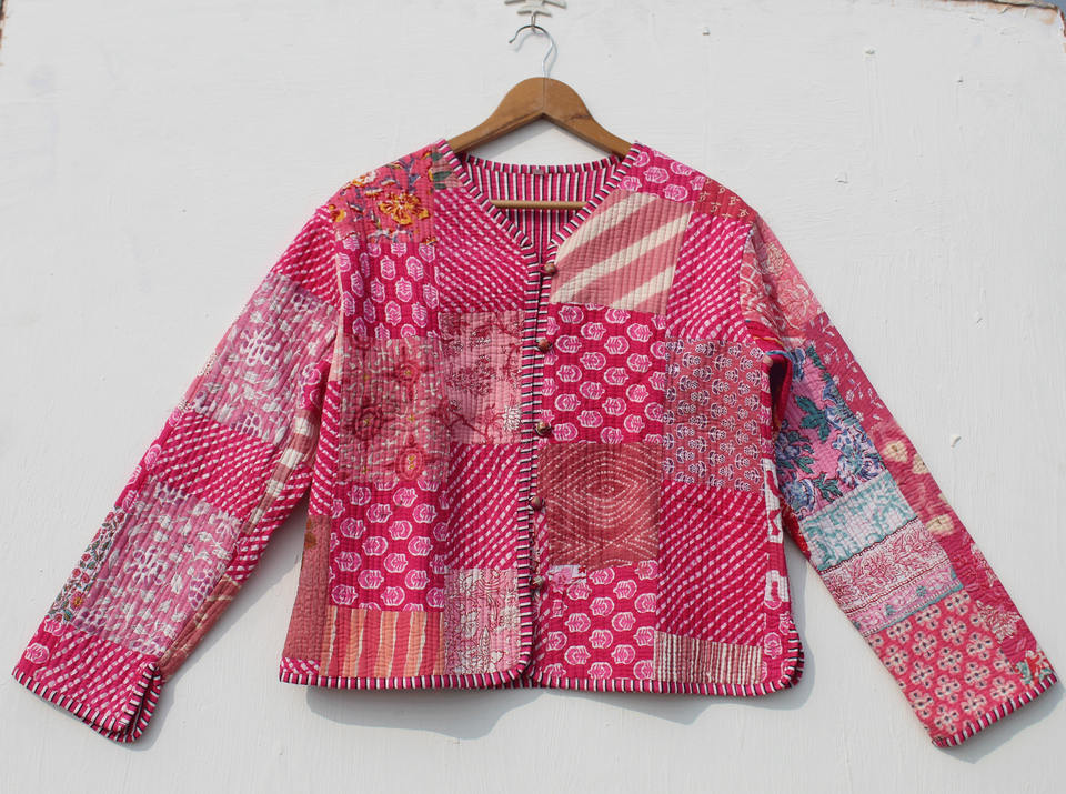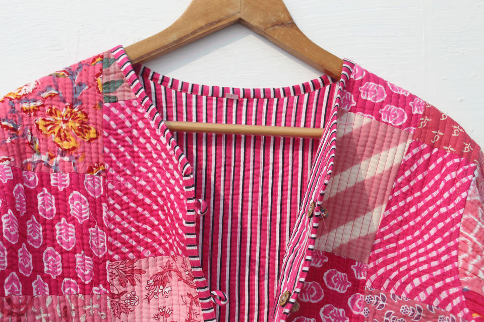 เสื้อแจ็คเก็ตผ้าฝ้ายบุผ้านวมสำหรับผู้หญิง สไตล์โบฮีเมียน วินเทจ แบบกิโมโน แต่งแถบลาย ใส่ได้สองด้าน ทำมือ ดีไซน์เปิดด้านหน้า เสื้อโค้ทแบบใหม่