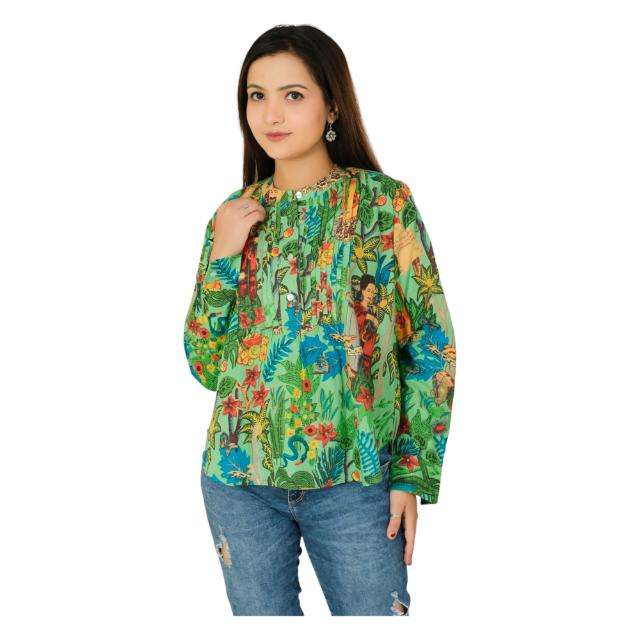 เสื้อผู้หญิงผ้าฝ้ายแขนยาว, เสื้อลำลองแฟชั่นวินเทจระบายอากาศได้ดีสำหรับฤดูร้อน