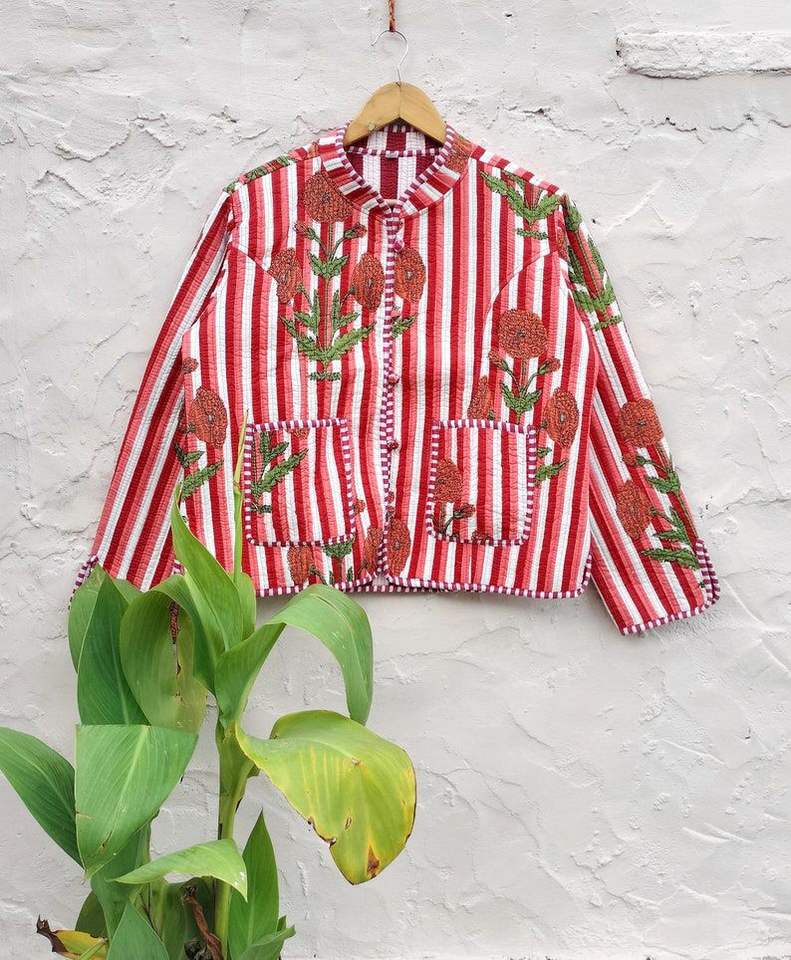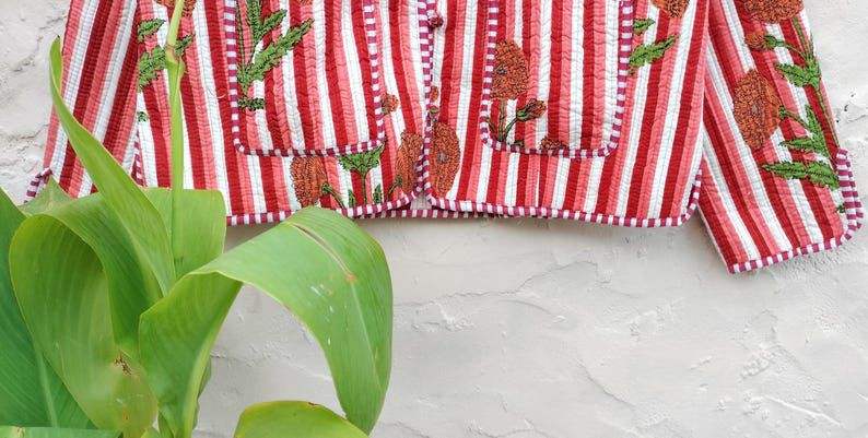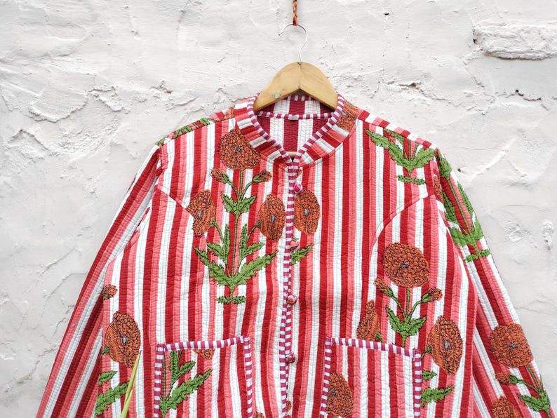 เสื้อแจ็คเก็ตผ้าฝ้ายพิมพ์ลายสไตล์โบฮีเมียนสำหรับผู้หญิง ตกแต่งด้วยลายทางแบบคิโมโน ติดกระดุมด้านหน้า ทำมือสไตล์วินเทจ เหมาะสำหรับฤดูหนาว
