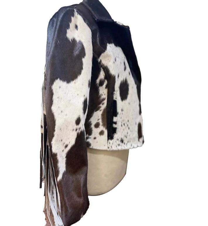 แจ็กเก็ตหนังวัวสีดำและสีขาวสำหรับสตรี