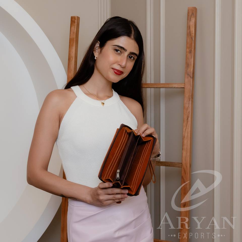 กระเป๋าสตางค์หนังวัวสำหรับผู้หญิงมีช่องใส่โทรศัพท์กระเป๋าสตางค์หนังแท้แบบตะวันตกมีสายคล้องข้อมือคุณภาพสูง
