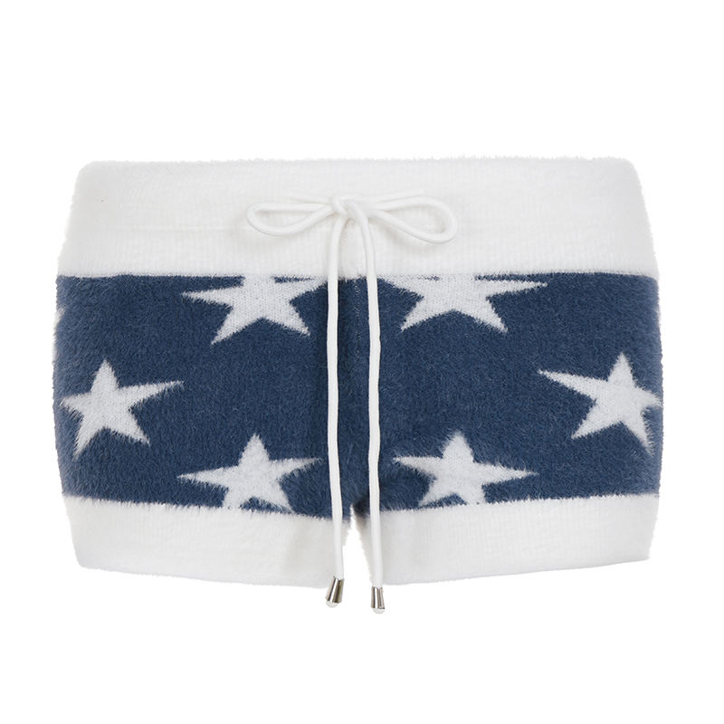 กางเกงขาสั้นผ้าถักนุ่มสบายสำหรับผู้หญิง ลายดาว กางเกงนอนเนื้อนุ่มพร้อมเชือกผูกเอว สำหรับใส่ที่บ้านและสวมใส่ลำลอง