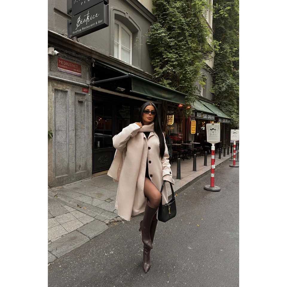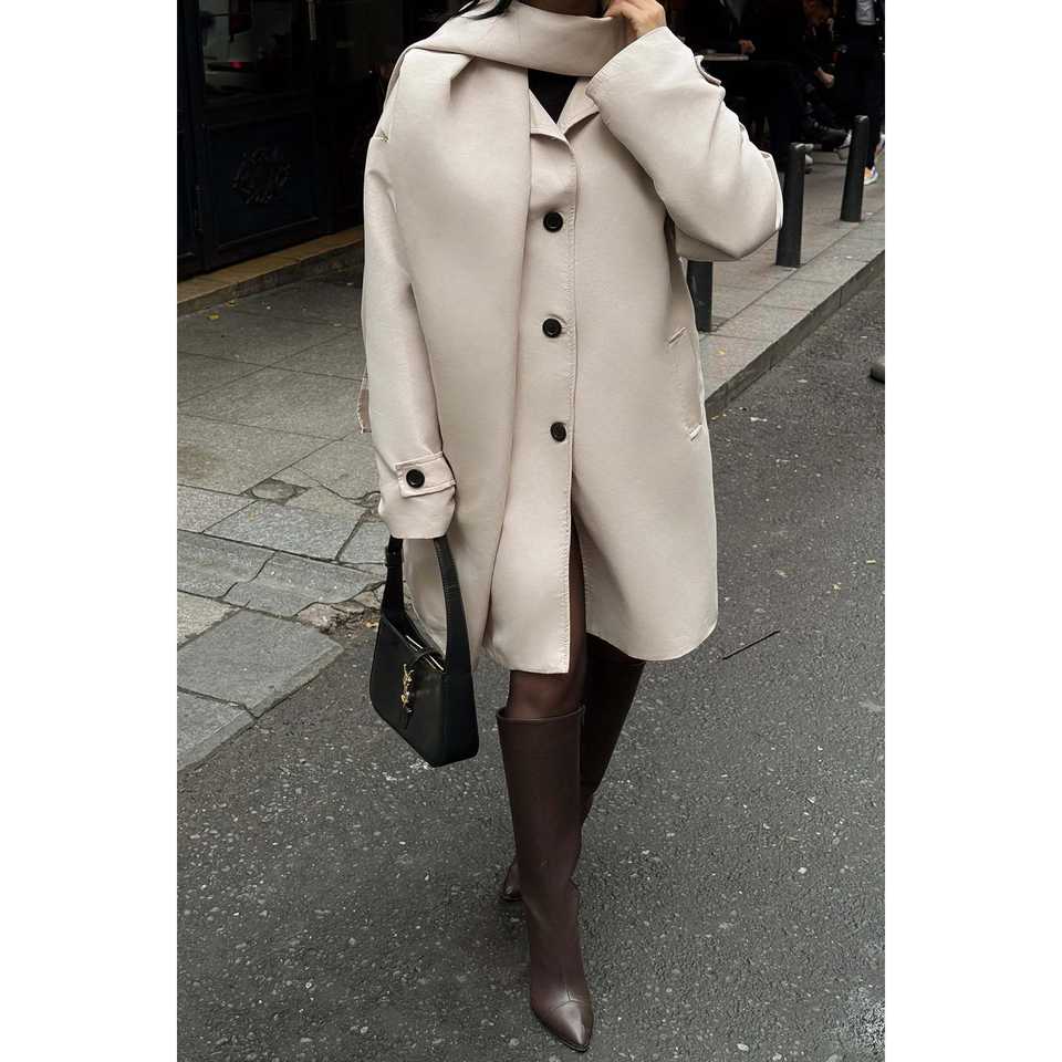 เสื้อโค้ทเทรนช์สีครีมสำหรับผู้หญิง กระดุมสองแถว ปิดด้านหน้า สไตล์วินเทจลำลอง บุด้วยผ้าฝ้าย ลายพิมพ์ฤดูใบไม้ร่วง พร้อมเข็มขัด