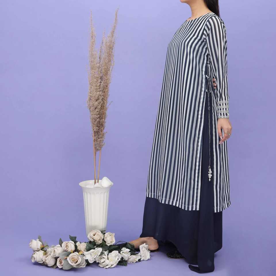เสื้อยืดผู้หญิงลายริ้วผ้าชีฟองย่น PS5019 1ชิ้น