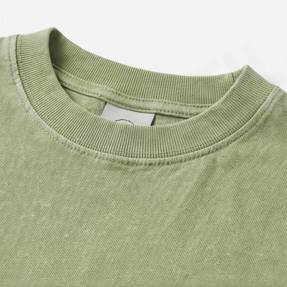เสื้อครอปท็อปผู้หญิง แขนสั้น ล้างสีแบบแอซิดวอช คอกลม ทรงหลวม สไตล์เสื้อกล้ามสำหรับฤดูร้อน สีตามสั่ง