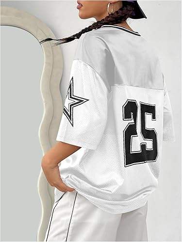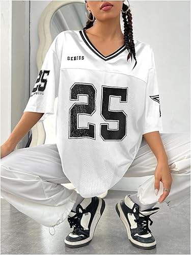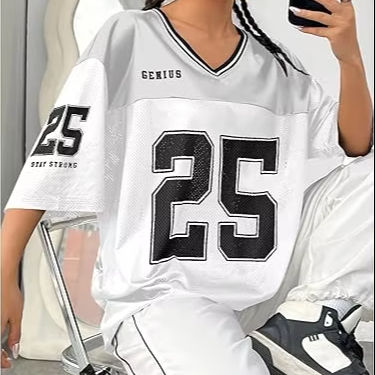 เสื้อยืดครอปทรงอเมริกันฟุตบอลสำหรับผู้หญิง ทรงโอเวอร์ไซส์ ระบายอากาศได้ดี แฟชั่นกีฬา พิมพ์หมายเลขทีมสโมสร ไซส์พลัส