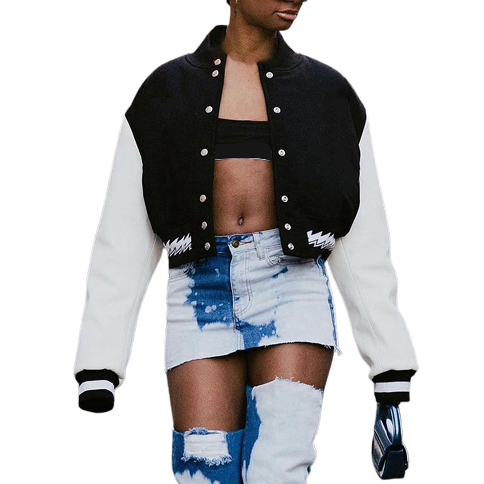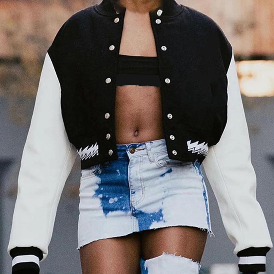 เสื้อแจ็กเก็ต Varsity ผู้หญิง ทรงครอปประเภทรายการ
