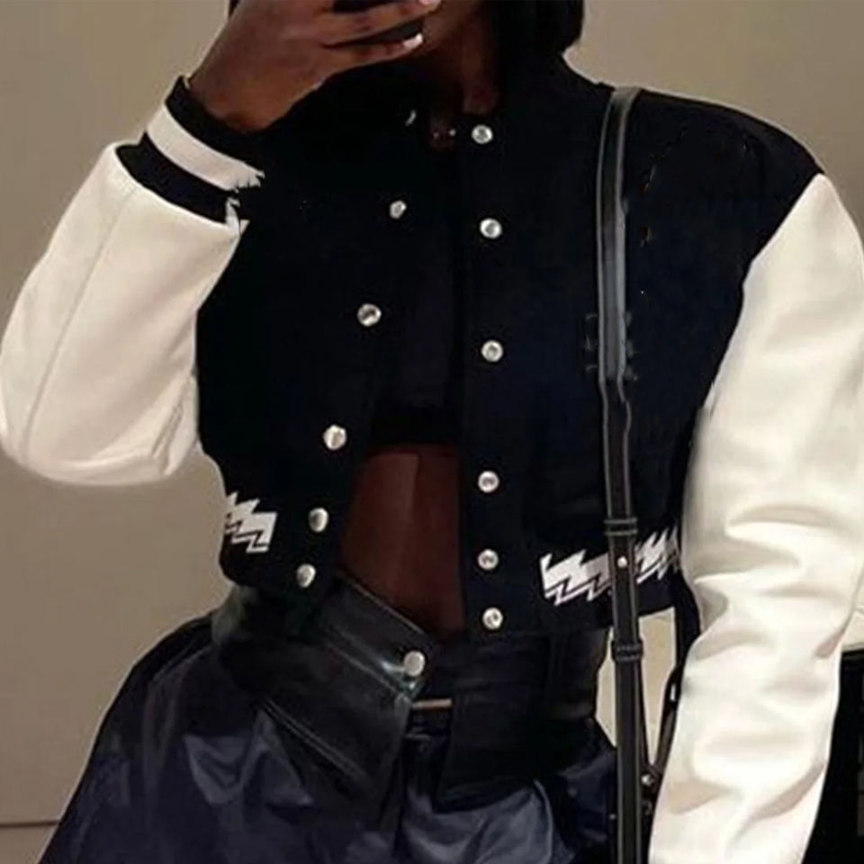 ชื่อสินค้า:เสื้อแจ็กเก็ต Varsity ผู้หญิง ทรงครอป