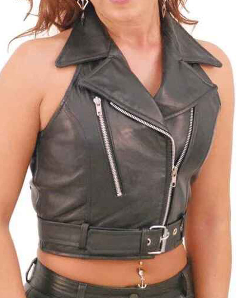 เสื้อกั๊กหนังแท้ทรงครอปสำหรับผู้หญิง สไตล์ทางการ มีซิป เหมาะสำหรับฤดูหนาว ขี่มอเตอร์ไซค์ มีกระเป๋า ระบายอากาศ กันน้ำ ดูวินเทจ