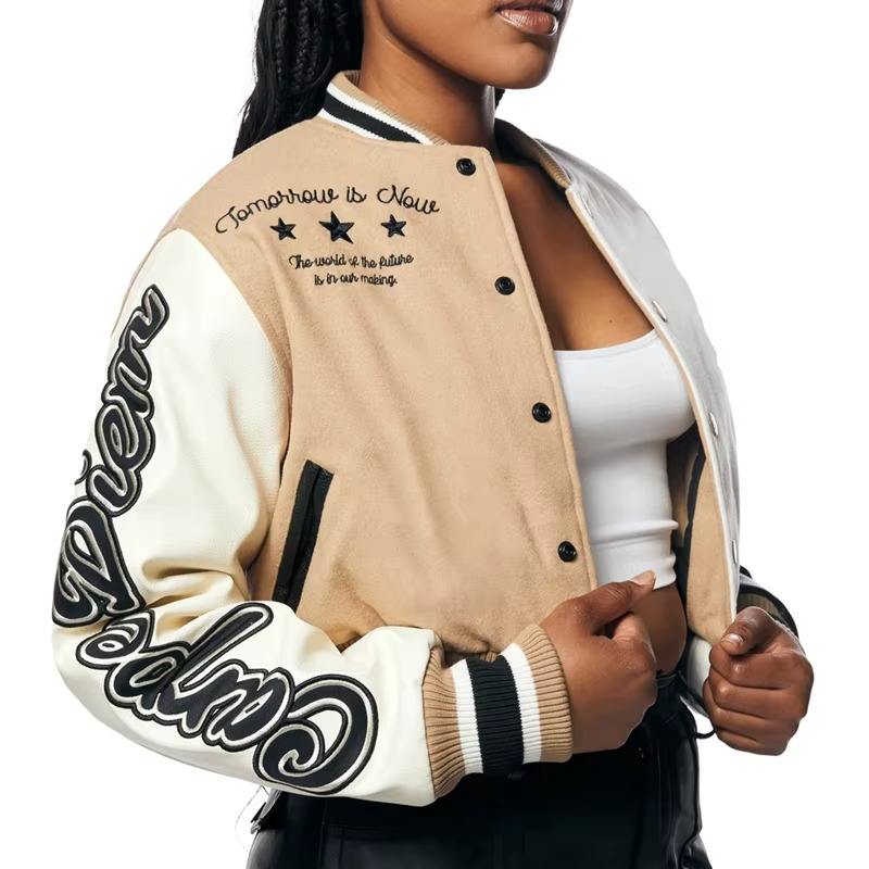 แจ็กเก็ตขนแกะกำมะหยี่ปักลายสำหรับผู้หญิงแจ็คเก็ตหนังแท้สำหรับฤดูหนาวแจ็คเก็ตหนังผ้าฝ้าย-เบาะเลตเทอร์แมน