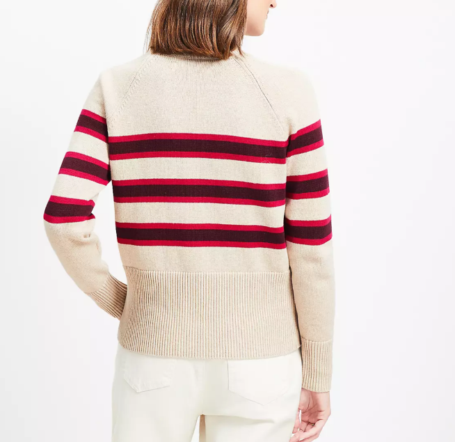 เสื้อสเวตเตอร์แบบสวมหัวแขนยาวลายทางแบบคลาสสิกสำหรับผู้หญิงเสื้อสเวตเตอร์แบบสวมหัวมีลายนูนด้านหน้าและด้านหลังสำหรับฤดูหนาว