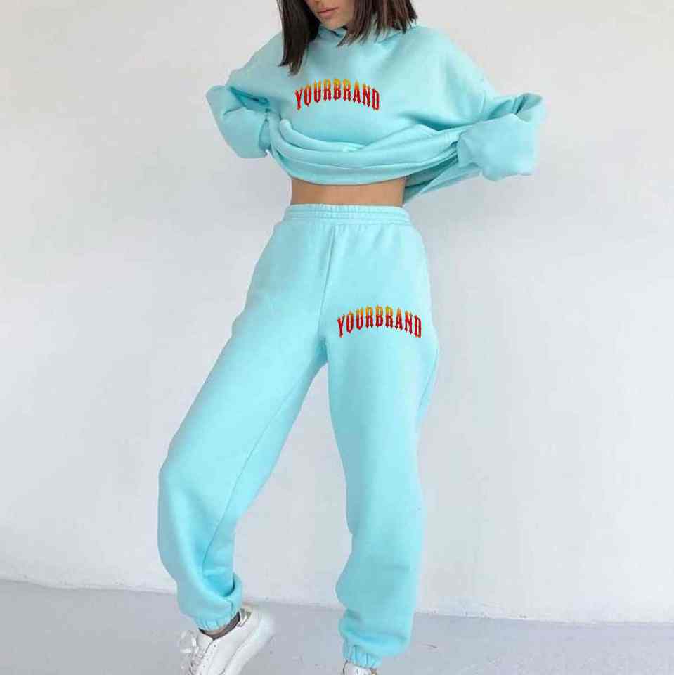 ชุดวอร์มกางเกงมีฮู้ดสำหรับผู้หญิงกางเกงวอร์ม2ชิ้นสำหรับฤดูหนาวผ้าเฟรนช์เทอร์รี่ออกแบบได้ตามต้องการ