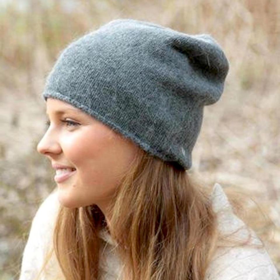 Women's Unisex Custom Double-Sided Cashmere Beanie Hand Knit Winter Wear Stylish Warm Comfortable Light Solid Colors Image Free