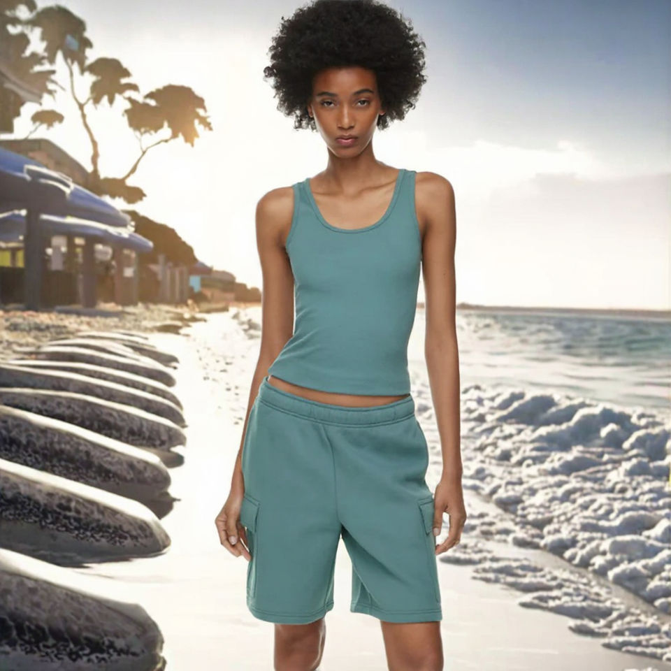 กางเกงขาสั้นทรงสปอร์ตเอวกลางผ้าโพลีเอสเตอร์เนื้อนุ่ม ระบายอากาศได้ดี แห้งเร็ว น้ำหนัก 180 กรัม ซิปหน้า สำหรับผู้หญิง เป็นมิตรต่อสิ่งแวดล้อม