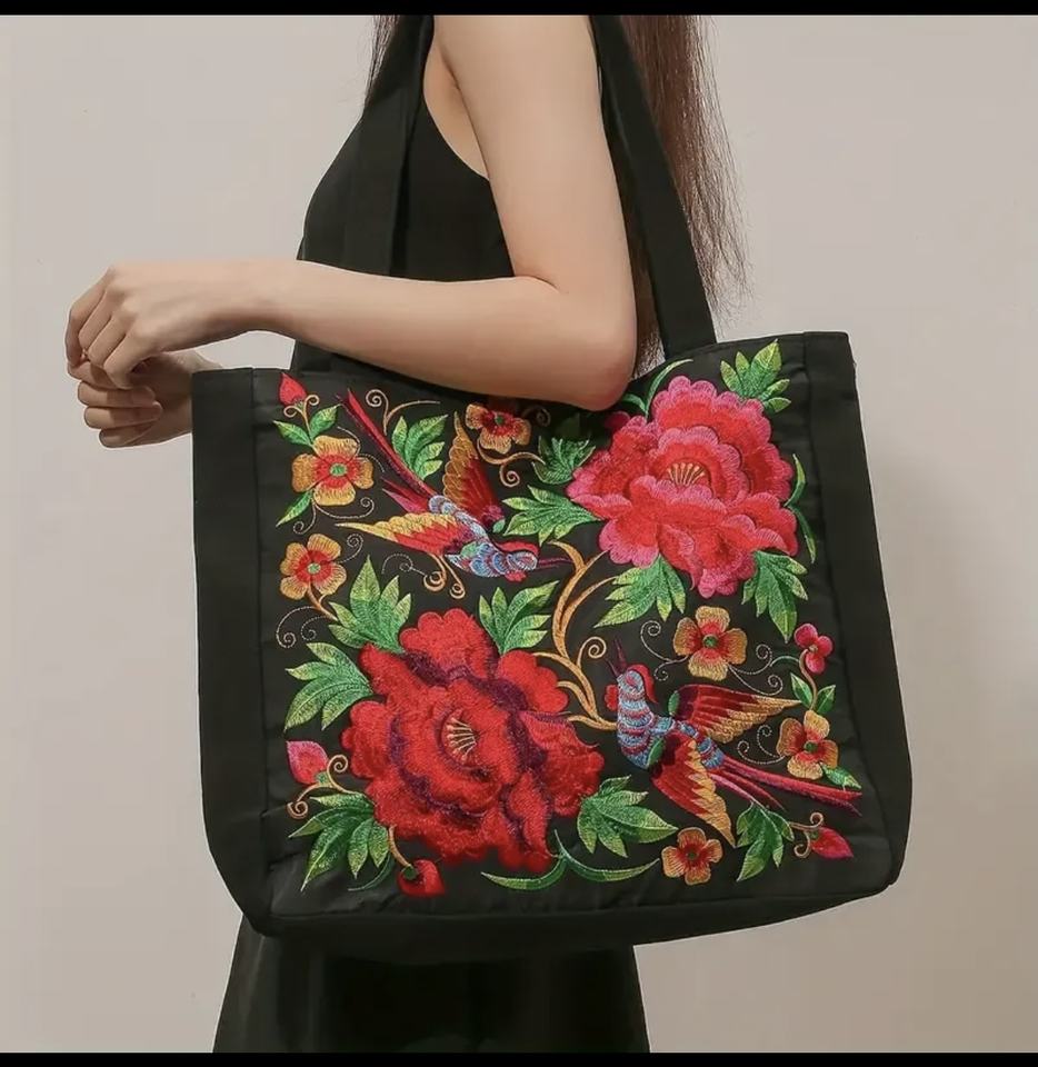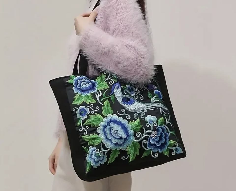 กระเป๋าผ้าแคนวาสปักลายตามสั่งสำหรับผู้หญิง ลายจุด หูหิ้วแบบยาว สายสะพายไหล่ น้ำหนักเบา ภายในทำจากโพลีเอสเตอร์