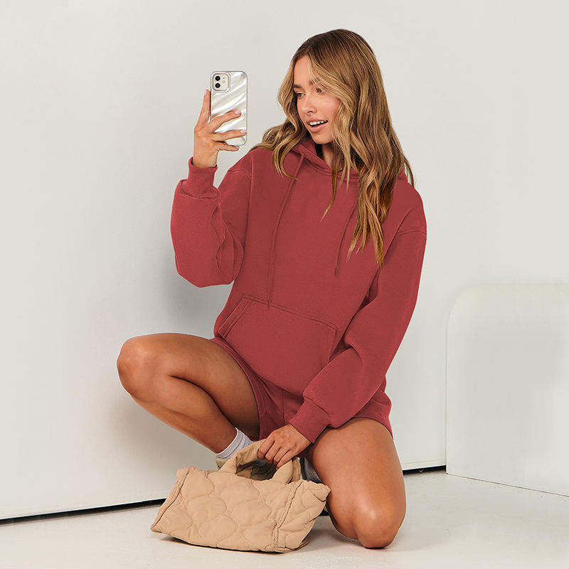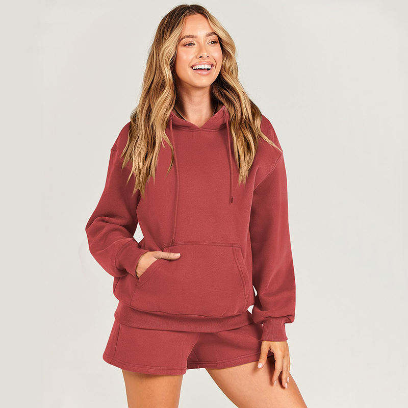 ชุดเซ็ตเสื้อฮู้ดและกางเกงขาสั้นโอเวอร์ไซส์ 2 ชิ้น สไตล์ Y2K สำหรับฤดูหนาว ปักโลโก้ตามสั่งสำหรับผู้หญิง จากผู้ผลิตผ้า