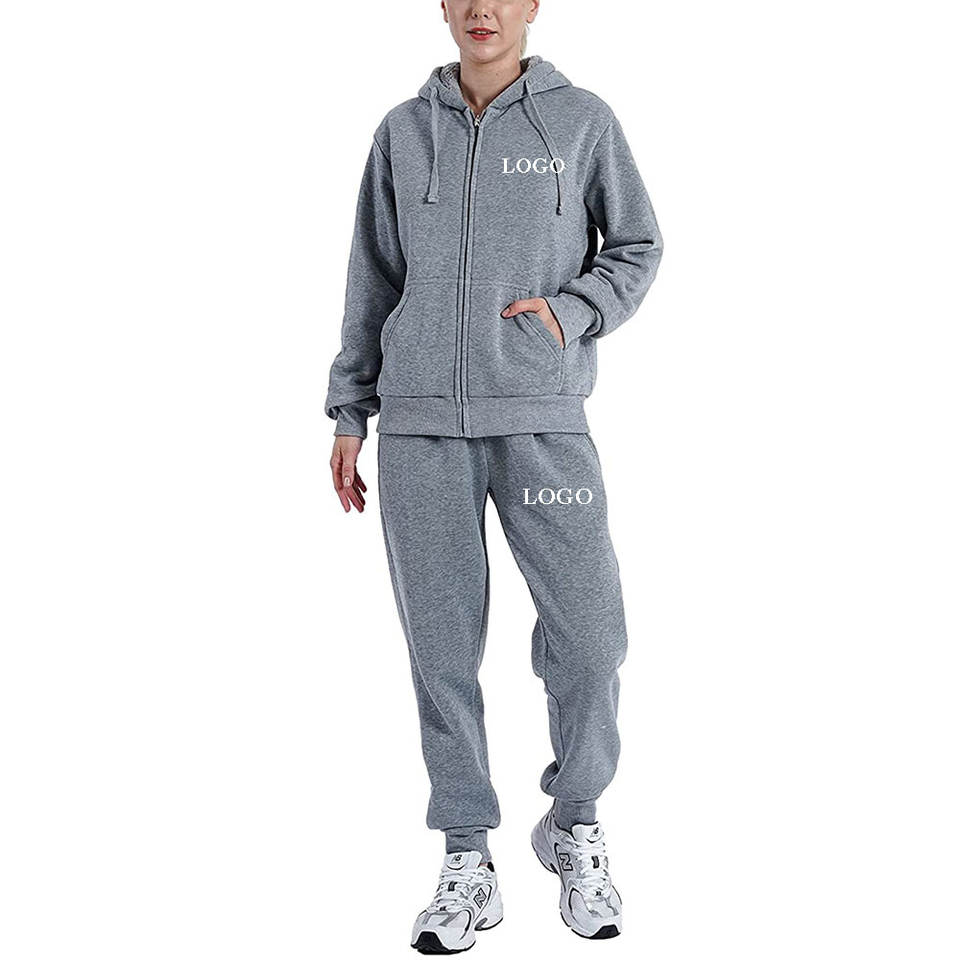 ชุดเซ็ตฮู้ดดี้ซิปสองชิ้นผ้าเฟรนช์เทอร์รี่เนื้อหนาสำหรับผู้หญิง ทรงหลวม โอเวอร์ไซส์ ไซส์พลัส