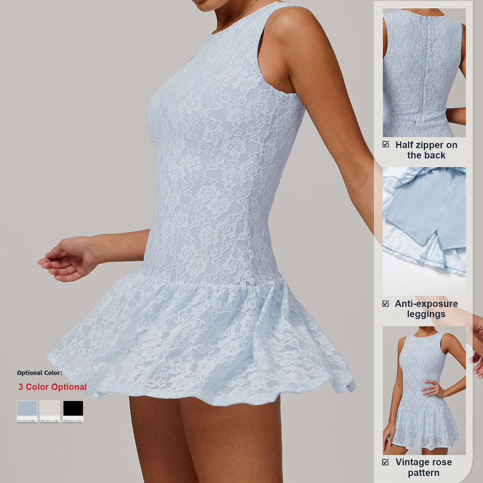 Women's Custom High Quality Tennis Dress Lace Spliced Mesh Breathable Quick Dry 4-Way Stretch Sleeveless Zipper Sports Running