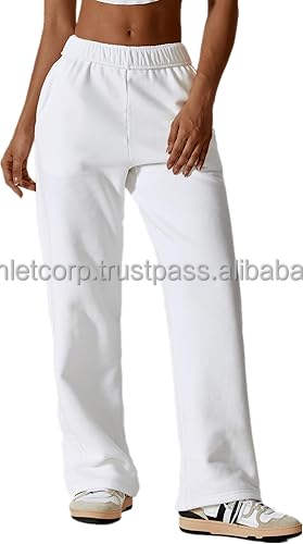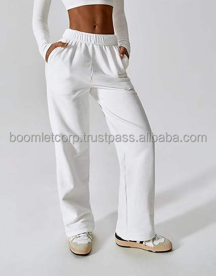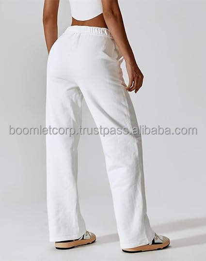 กางเกงวอร์มขาบานเอวสูงสำหรับผู้หญิง เอวยางยืด ระบายอากาศได้ดี กางเกงออกกำลังกายทรงหลวม สไตล์สตรีท ผ้าแคนวาส