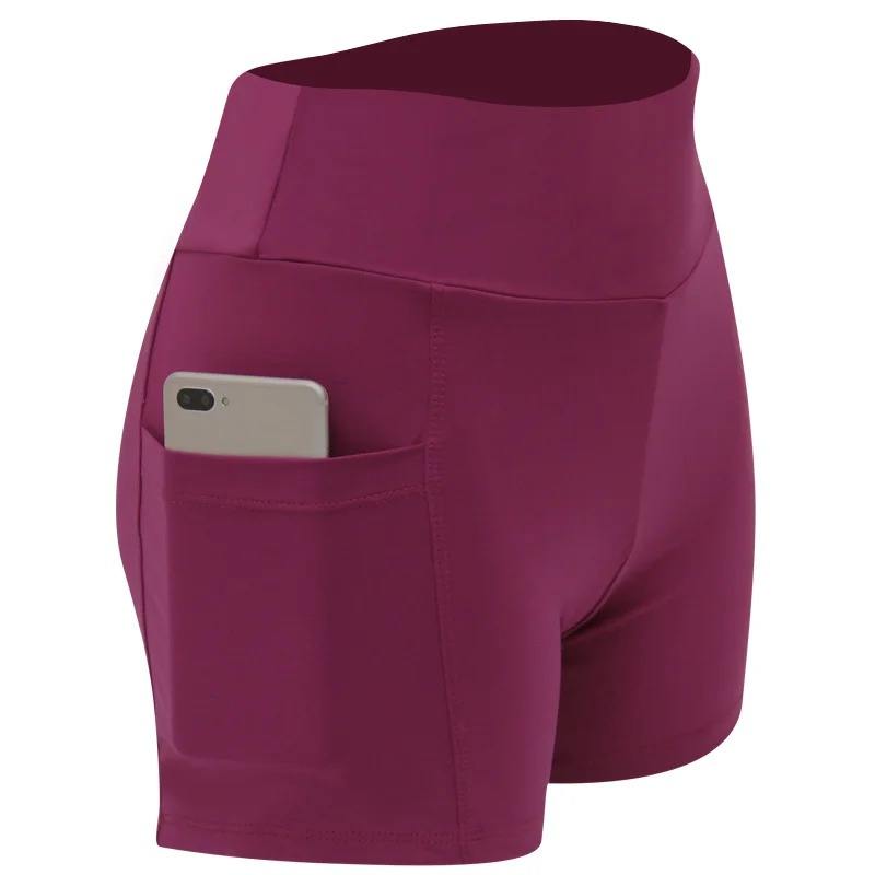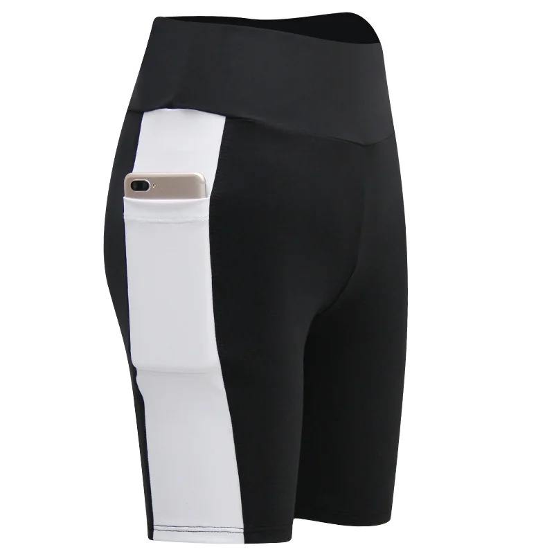 กางเกงเลกกิ้งเอวสูงสำหรับผู้หญิงกางเกงขาสั้นสำหรับเล่นโยคะฟิตเนสแบบยืดได้พร้อมกระเป๋าตาข่ายสำหรับดันยกขา