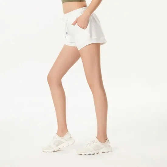 กางเกงขาสั้นเอวสูงสำหรับเล่นโยคะของผู้หญิงกางเกงขาสั้นแต่งระบายสำหรับออกกำลังกายลำลองของเด็กผู้หญิงใส่ในฤดูร้อน