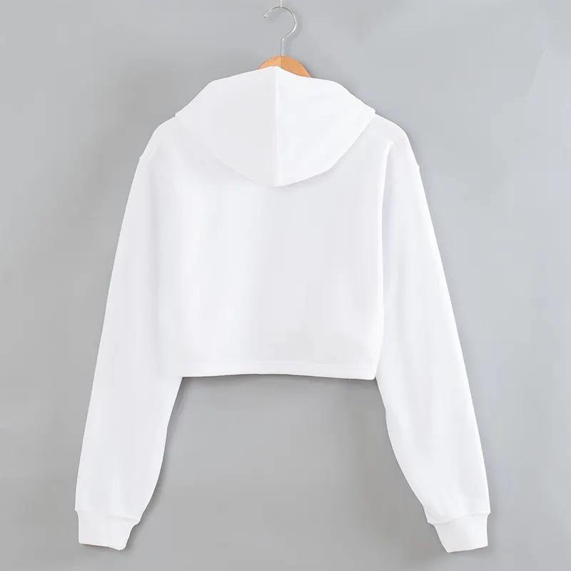 เสื้อฮู้ดครอปผ้าฝ้ายถักโลโก้แบบกำหนดเองสำหรับผู้หญิง ระบายอากาศได้ดี สวมใส่สบาย สไตล์สตรีทแวร์ สำหรับฤดูใบไม้ผลิและฤดูใบไม้ร่วง
