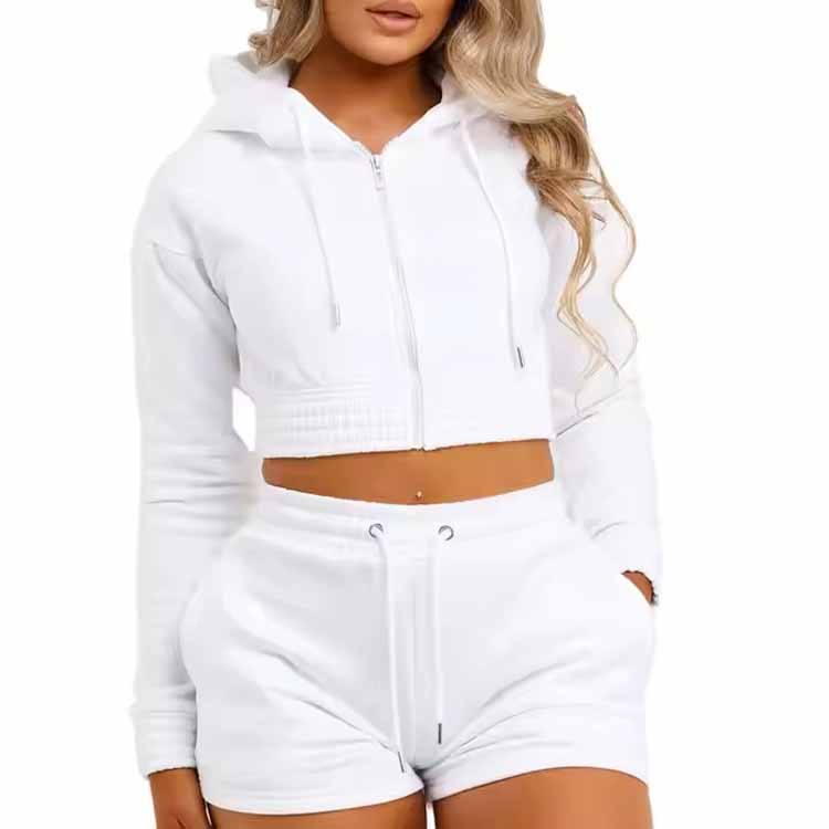 เซ็ตเสื้อแจ็กเก็ตและกางเกงขาสั้นของผู้หญิงชุดเสื้อวอร์มประดับพลอยเทียมเสื้อและกางเกงขาสั้นสำหรับฤดูร้อนโลโก้ออกแบบได้ตามต้องการ