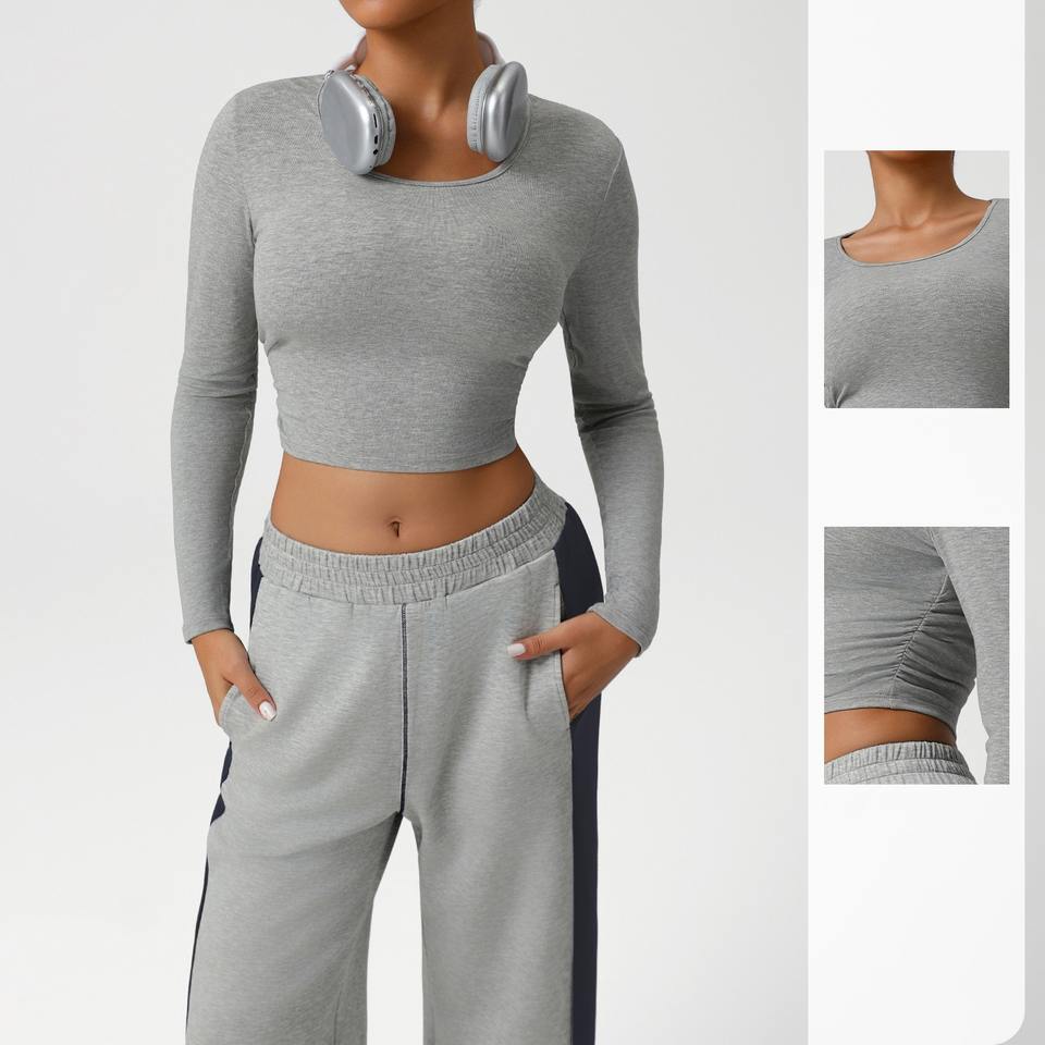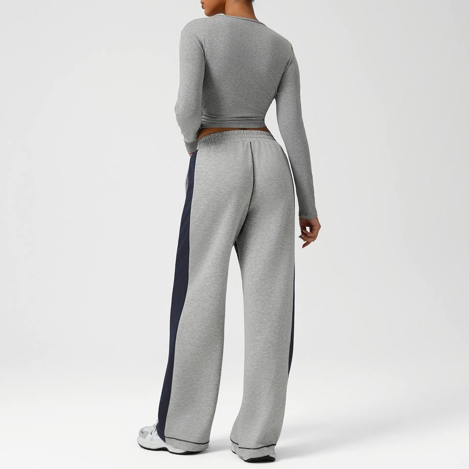 ชุดเซ็ทสองชิ้นสำหรับผู้หญิง เสื้อแขนยาวและกางเกงขายาวปักลายโลโก้แฟชั่นตามสั่ง