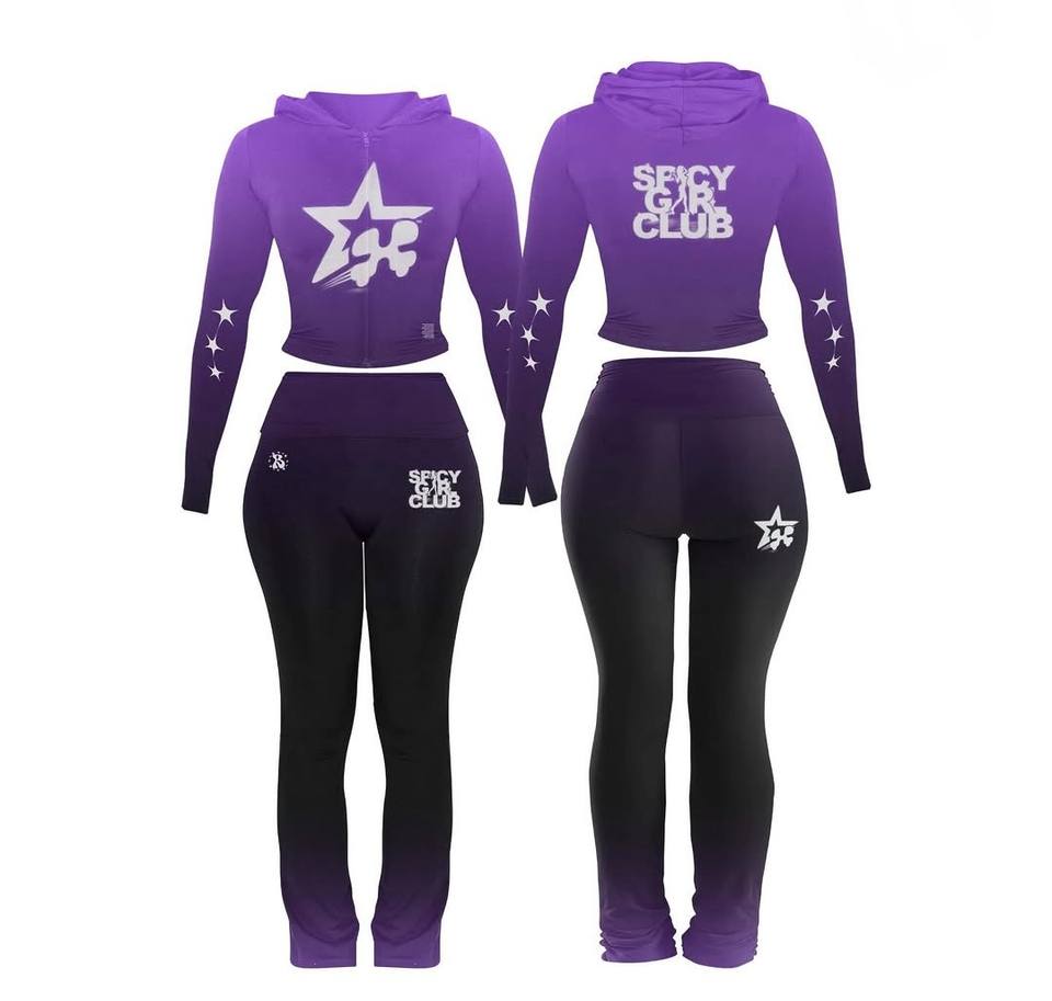 ชุดวอร์มแฟชั่นปักโลโก้ตามสั่งสำหรับผู้หญิง กางเกงกีฬา ซิปฮู้ด เสื้อแขนยาว ชุดสองชิ้น