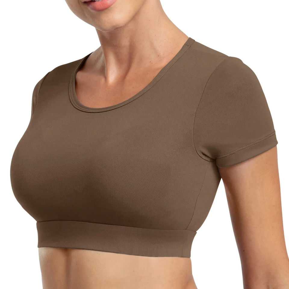 เสื้อกล้ามสายคล้องคอสำหรับเล่นโยคะสำหรับผู้หญิงทำจากวัสดุดูดซับแรงกระแทกออกแบบโลโก้ได้ตามที่ต้องการ