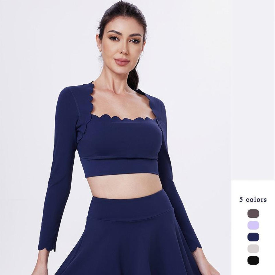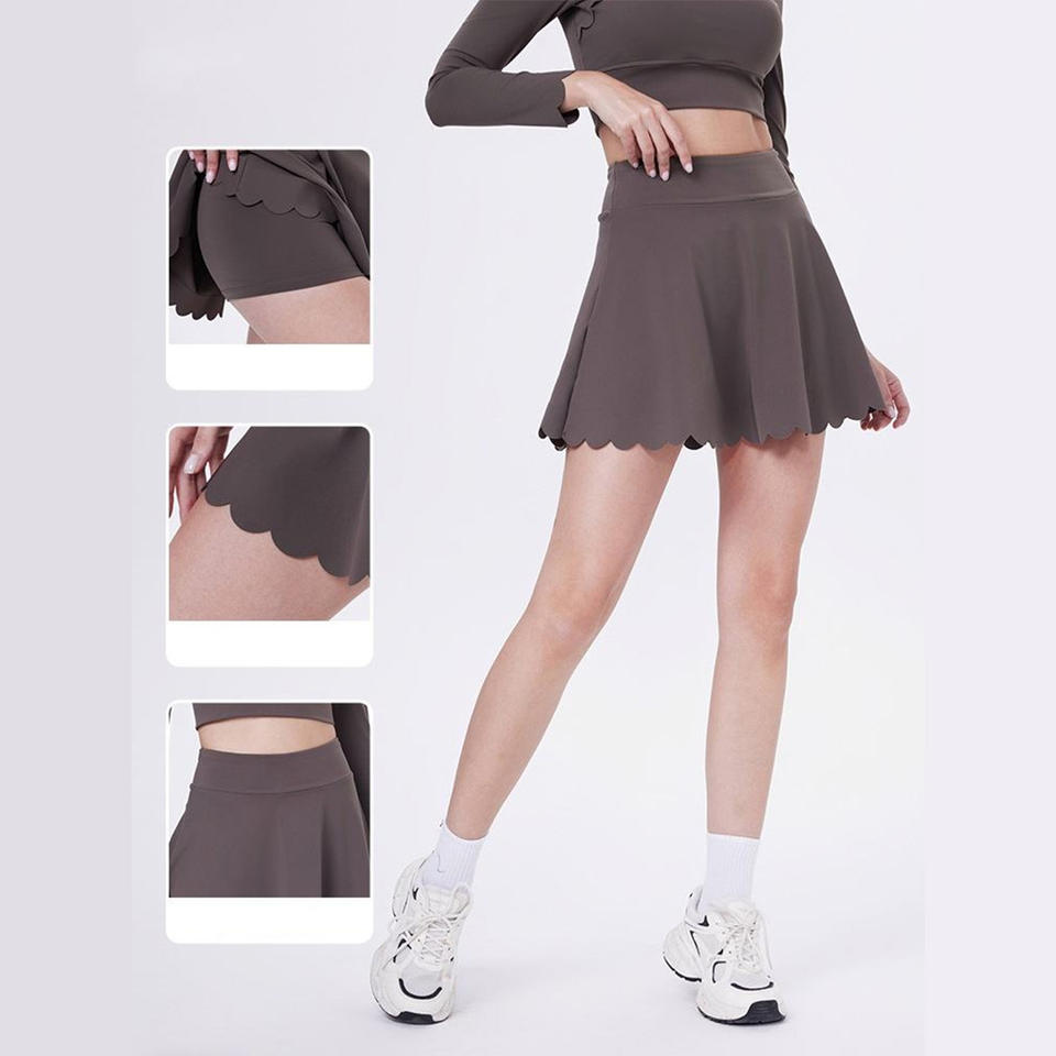 ชุดกระโปรงเทนนิสเอวสูงพิมพ์โลโก้ตามสั่งสำหรับผู้หญิง ระบายอากาศได้ดี พร้อมเสื้อชั้นในกีฬา ชุดออกกำลังกายสองชิ้น